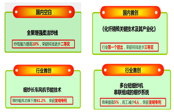 Sa pamamagitan ng makabagong konsepto ng "Isang Hakbang Sa unahan ng Iba", ang modelo ng teknikal na pananaliksik ng "isang pangunahing, dalawang link, at full-staff na pagbabago" ay na-summarized at pinino. Pinamunuan niya ang paglikha ng National Textile Industry New Fiber Spinning Innovation Center, ang National Yarn Testing Center, National Knitting Yarn R&D at Production Base, ang Provincial Enterprise Technology Center, ang probinsya ng bagong fiber spinning engineering technology center, ang probinsya ng graduate graduate workstation at iba pang mga platform ng R&D at makabagong ideya. Lumikha ng isang panlalawigan na digital workshop para sa "high-end ecological" na pinaghalong sinulid na may 20,000 spindles, ang domestic maliit na batch na multi-variety Green intelihenteng linya ng produksiyon, magsagawa ng 2 pambansang programa ng spark, 3 pambansang programa ng sulo, at 4 na Jiangsu Provincial Key Technology Innovation Programs. 8 Ang mga nakamit ay nanalo ng Jiangsu Textile Technology Innovation Award, at nanalo ng 17 National Authorized Imbention Patents at 10 utility model patent. Ang pangunahing teknolohiya ng kumpanya ay palaging nasa unahan ng industriya, at maraming mga makabagong proyekto ang nanalo sa industriya ng domestic.