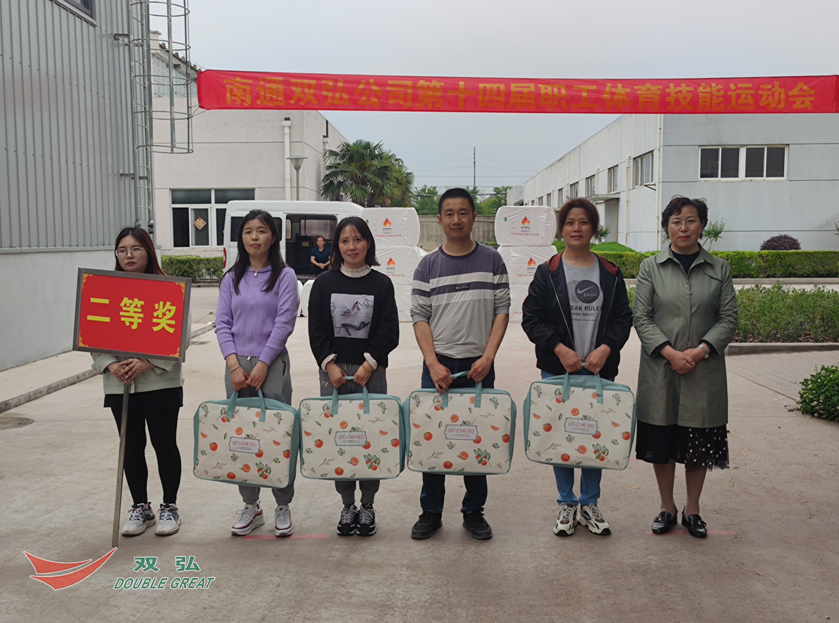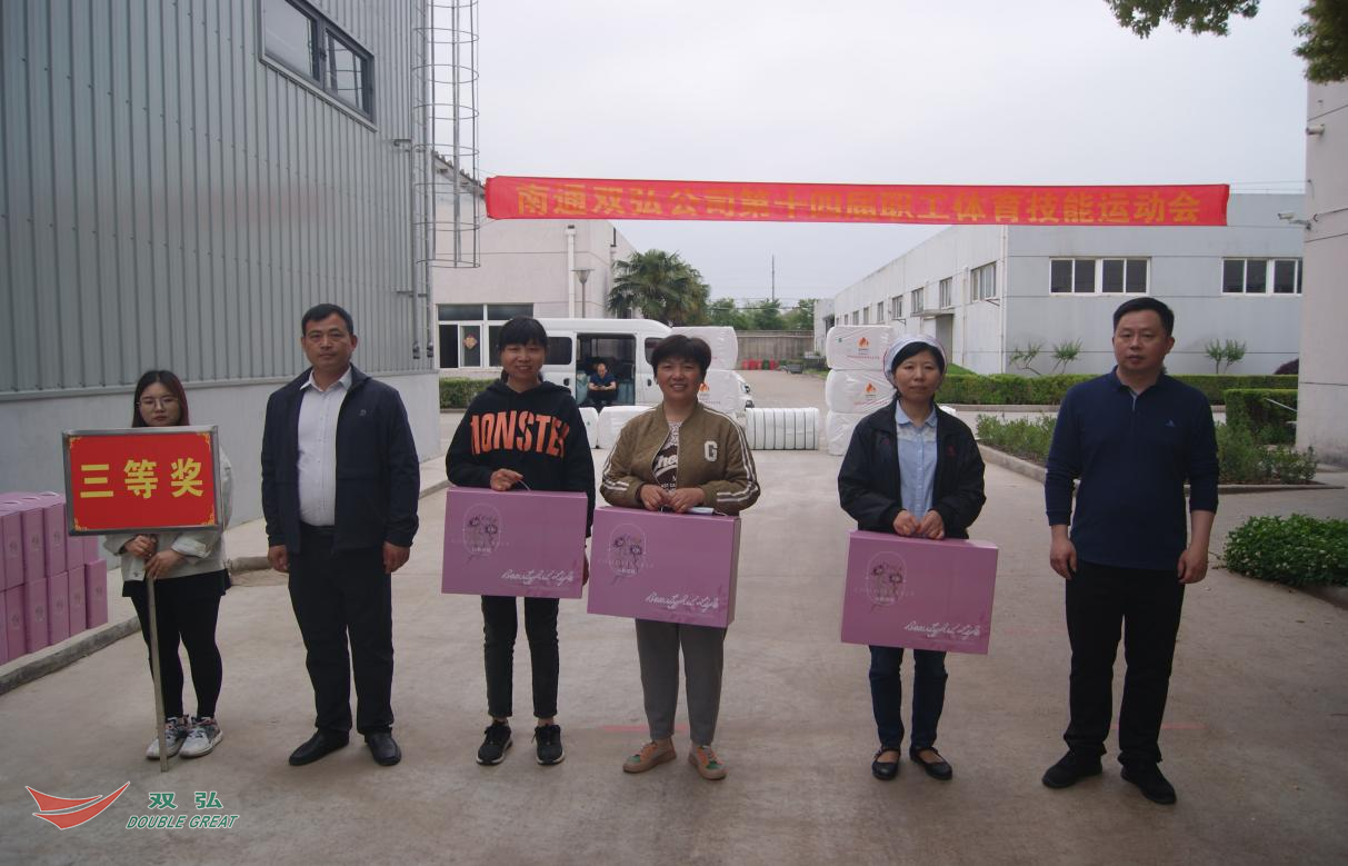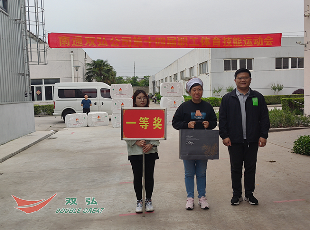 Upang mapayaman ang espirituwal at kulturang buhay ng mga empleyado, itaguyod ang diwa ng pagsisikap, pag-unlad, kalusugan at pagkakaisa, mapahusay ang pagkakaisa at sentripetal na puwersa ng karamihan ng mga empleyado, at itaguyod ang mataas na kalidad na pag-unlad ng negosyo, Noong Mayo 6, ginanap ni Nantong Double Great Textile Co, Ltd ang ika -14 na Mga Laro sa Sports Skills ng empleyado. Si Zhang Guangyun, full-time vice chairman ng QuTang Town Federation of Trade Unions, at Yang Yang, chairman ng Double Great Company, ay lumahok sa kaganapan. Mahigit sa 160 mga empleyado sa harap na linya mula sa iba't ibang mga workshop ng kumpanya ay lumahok sa mga kumpetisyon sa iba't ibang mga kaganapan.