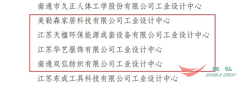 Kamakailan lamang, natutunan mula sa Jiangsu Provincial Department of Industry and Information Technology na iginawad ang Industrial Design Center ng Nantong Double Great Textile Co, Ltd. Ang pamagat ng Jiangsu Industrial Design Center noong 2022 .